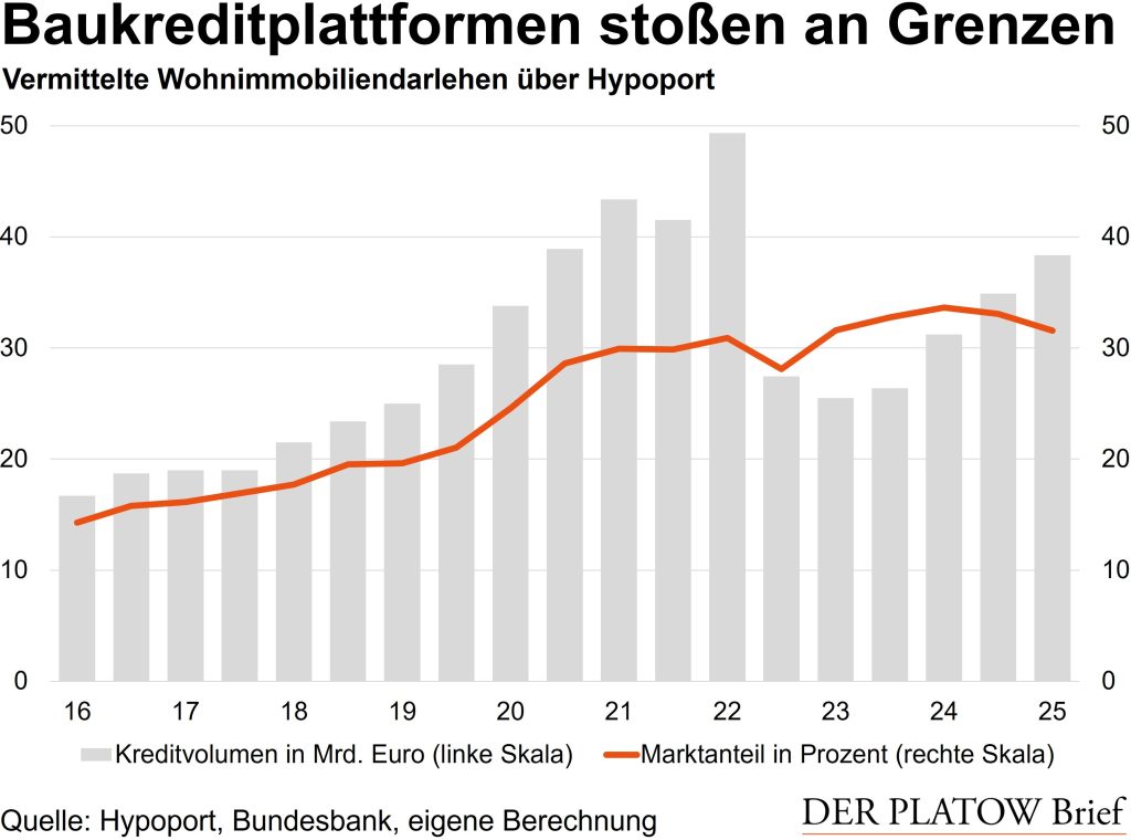 Rund ein Drittel aller Wohnkredite in Deutschland fließt über Plattformen der Hypoport und gut ein Zehntel über Interhyp. Den Vermittlungsriesen fällt weiteres Wachstum schwer.