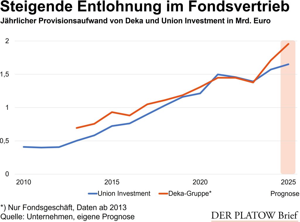 ETFs? Neobroker? Pah! Das klassische Fondsgeschäft über den Bankvertrieb funktioniert weiterhin. Bei der Vergütung des Vertriebs liefern sich DekaBank und Union Investment ein Kopf-an-Kopf-Rennen.