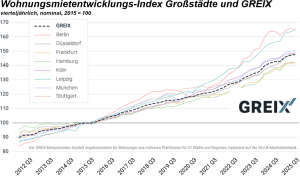In den deutschen Städten steigen die Mieten nur noch so schnell wie die allgemeinen Lebenshaltungskosten. Gleichzeitig bleibt das Angebot an Wohnungen gering. Vermietungen finden im Rekordtempo statt. Das zeigt das aktuelle Update des GREIX-Mietpreisindex, der vom Kiel Institut für Weltwirtschaft veröffentlicht wird.